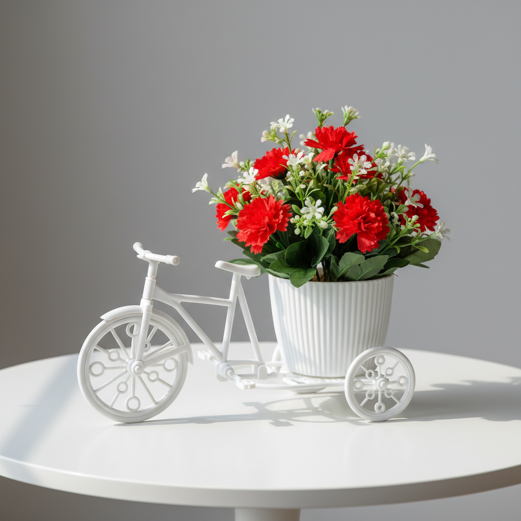 Perfect for home décor, weddings, office spaces, or gifting, this floral bicycle blends creativity with elegance. Its lightweight and durable construction allows easy placement on tables, shelves, or mantelpieces. The artificial flowers require no maintenance while maintaining a lively and cheerful aesthetic all year round.